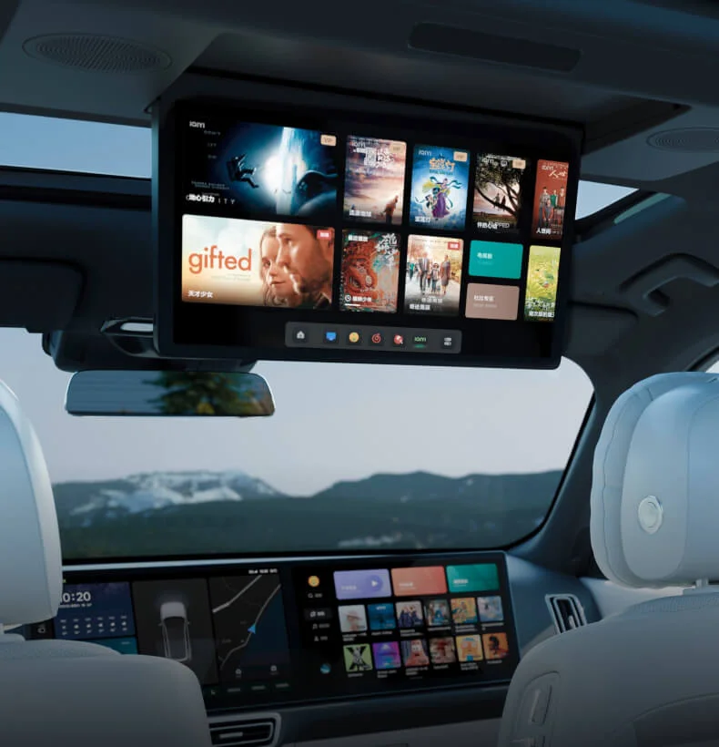 15,7-дюймовый OLED-экран с регулируемым углом наклона для развлечения пассажиров второго и третьего ряда.